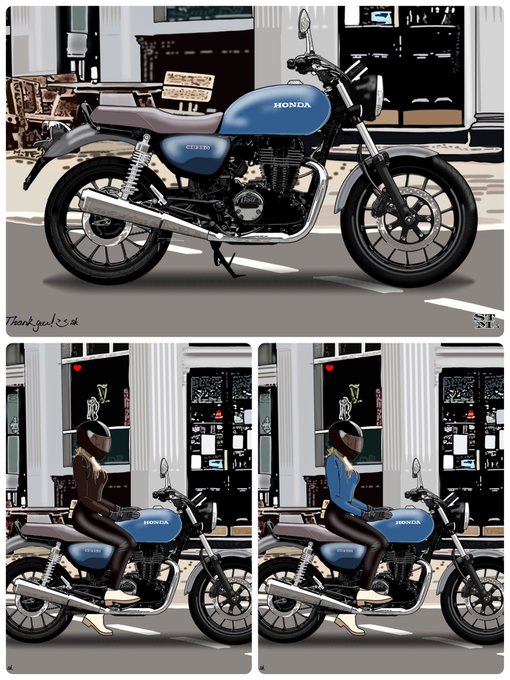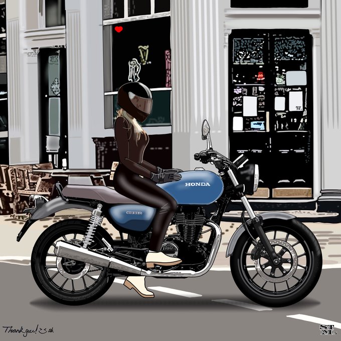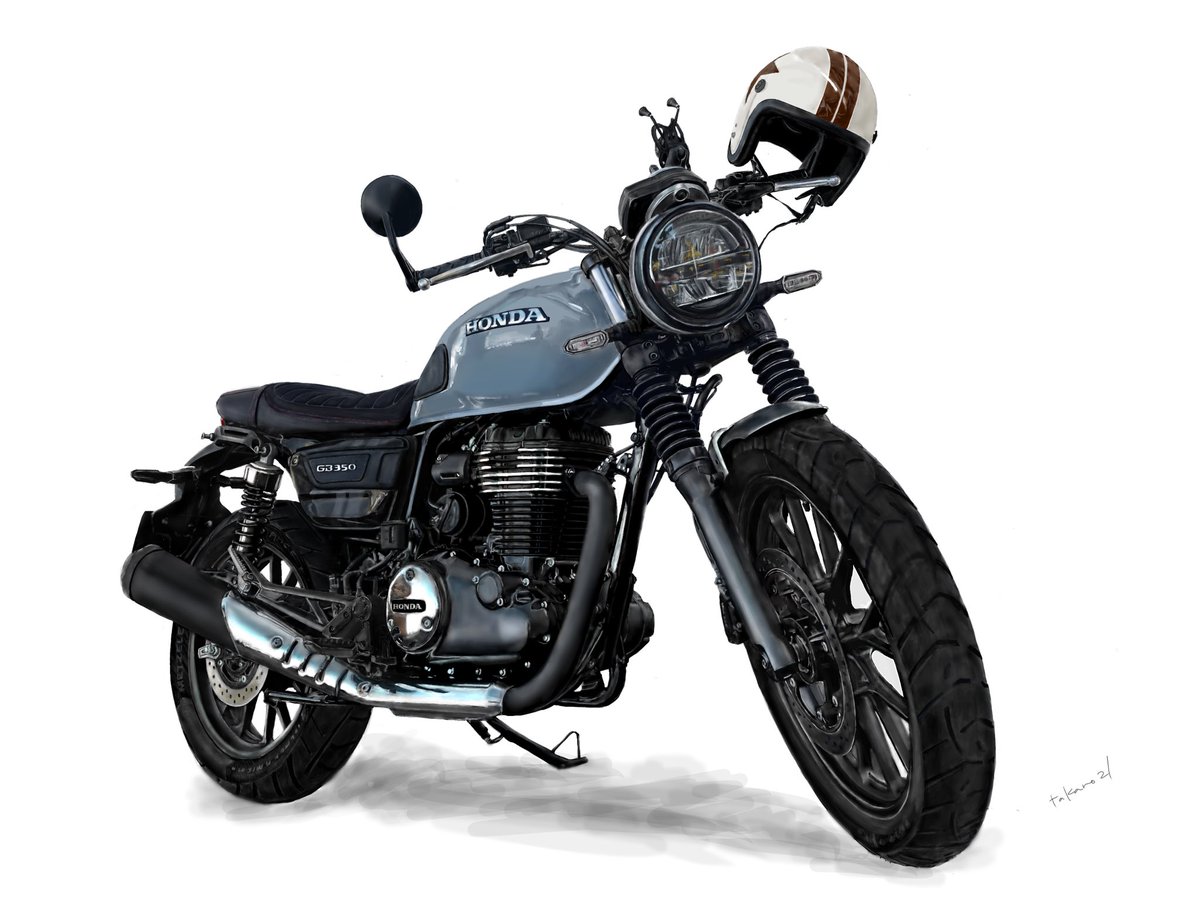 知り合いがかっこいいGB350Sで登場したので、ハンターカブに続いてバイクの絵を描いてみました_φ(*゚∀゚*) いやはや渋い✨ 細部まで頑張ったので拡大して見て欲しいです♪(๑ᴖ◡ᴖ๑)♪ #イラスト #絵描きさんと繫がりたい #GB350 #art #みんなで楽しむTwitter展覧会