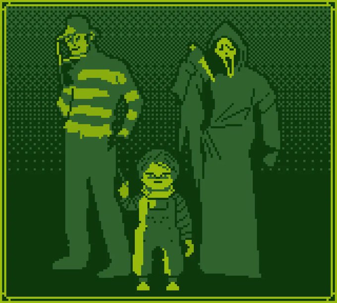 Primer aporte para el microctober de @maikurobitto día 1 slashers parte 1 #microctober #pixelart #terror #terrormovies #ドット絵 #aseprite #gameboy #gbasp