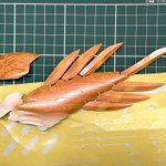 背中につける羽根、2枚とも塗装完了。せんざき式の塗装術にかかれば雨なんてへっちゃらです。 中央上部分を切り欠いてあるのは、電飾を入れる予定💡 #メガミ・エアリアル #GBWC11th #ガンプラ