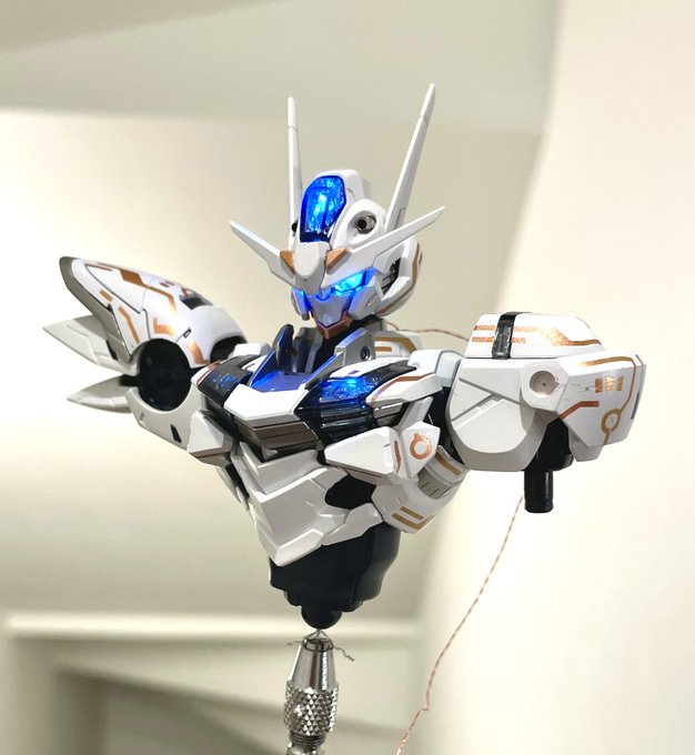 #メガミ・エアリアル 本体がほぼ完成しました。 細かい塗り分けと配線処理は後日作業。先にベースと武装の制作に取り掛かります。 7/15浅草ネクスポ展にて、その時点の完成度で展示させていただきますので、ぜひ見てやってください! #GBWC11th #水星の魔女