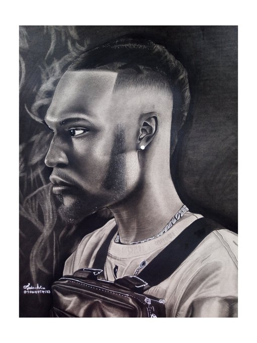 Charcoal drawing on chipboard of aba fast rising trap star and ceo of rapture shots RAPKID. ✍🏾🔥 #art, #ArtoftheRogue, #charcoalportrait, #art9ja, #rapkid, #jedo_art, #realismmasters, #Kofi, #GH, #Crayon, #VoxAkuma