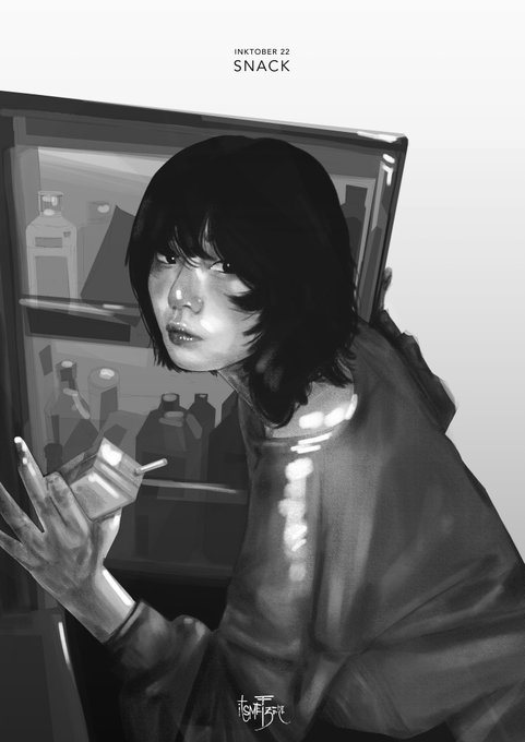 INKTOBER 2022 𝗗𝗔𝗬 𝟮𝟳: SNACK #inktoberday27 #Inktober #inktober2022 #snack #fridge #juice #girlfriend