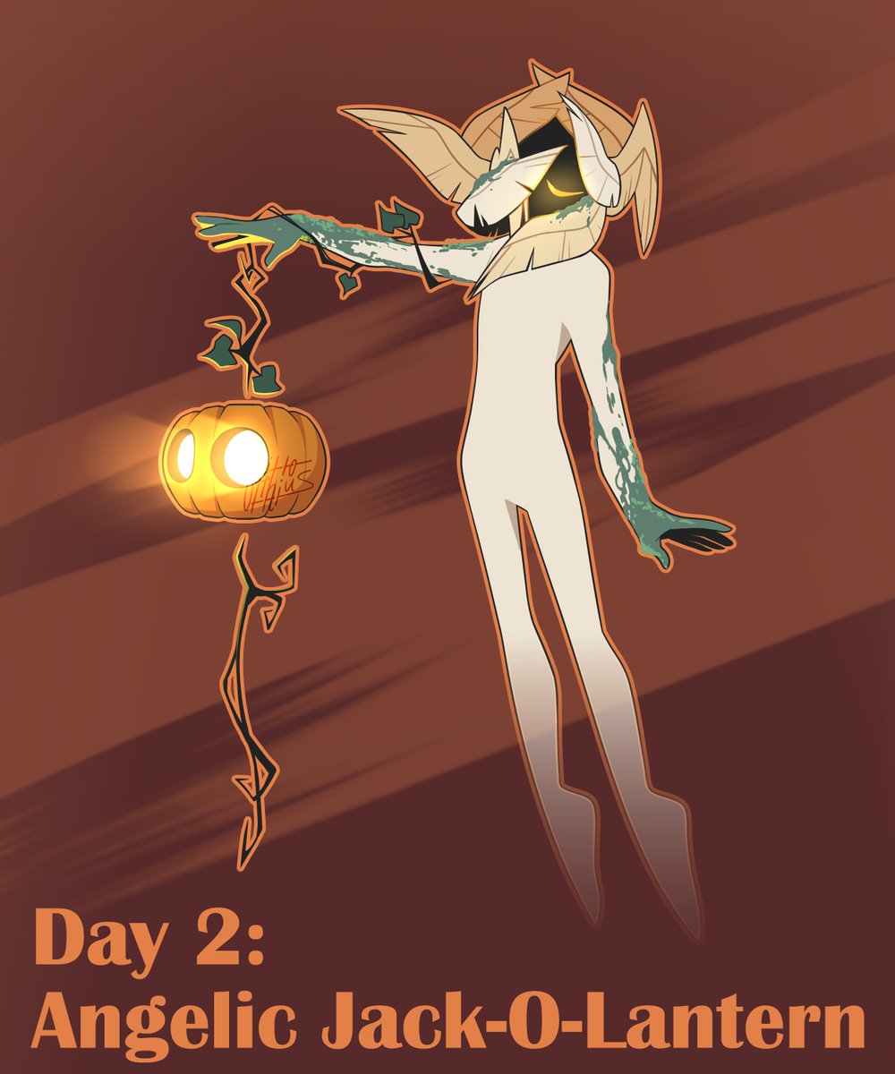 𝗗𝗮𝘆 𝟮 - 𝗔𝗻𝗴𝗲𝗹𝗶𝗰 𝗝𝗮𝗰𝗸-𝗢-𝗟𝗮𝗻𝘁𝗲𝗿𝗻 [$10 USD] An angel who roams through forest mists, holding a pumpkin, lit with a soul DM to claim! #GK_tober2022 #adoptable #Inktober
