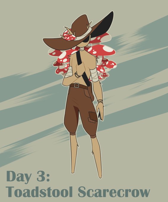 ✨Adoptable✨ 𝗗𝗮𝘆 𝟯 - 𝗧𝗼𝗮𝗱𝘀𝘁𝗼𝗼𝗹 𝗦𝗰𝗮𝗿𝗲𝗰𝗿𝗼𝘄 A scarecrow alchemist who uses the mushrooms that grow on their back to make potions DM to claim! #GK_tober2022 #adoptable #Inktober
