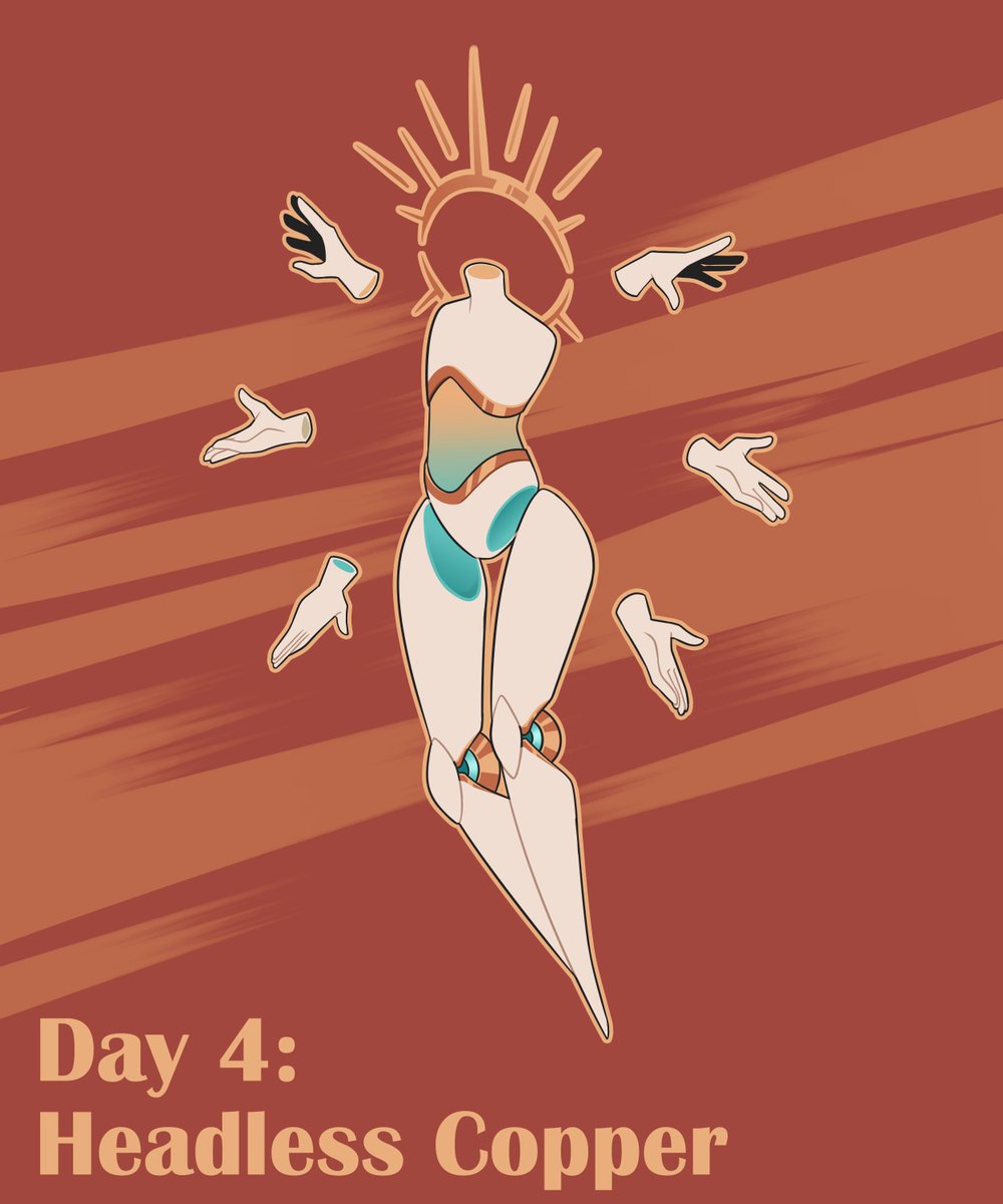 ✨Adoptable✨ 𝗗𝗮𝘆 𝟰 - 𝗛𝗲𝗮𝗱𝗹𝗲𝘀𝘀 𝗖𝗼𝗽𝗽𝗲𝗿 [$20] A sentient android that has risen to be worshipped like a god DM to claim! #GK_tober2022 #adopt #Inktober
