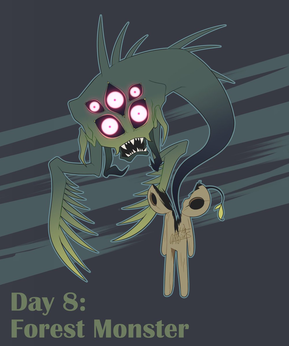 ✨Adoptable✨ Day 8 - Forest Monster [$20] An evil spirit that lures children, using a wooden doll as a disguise. DM to claim! #GK_tober2022 #adopt #Inktober