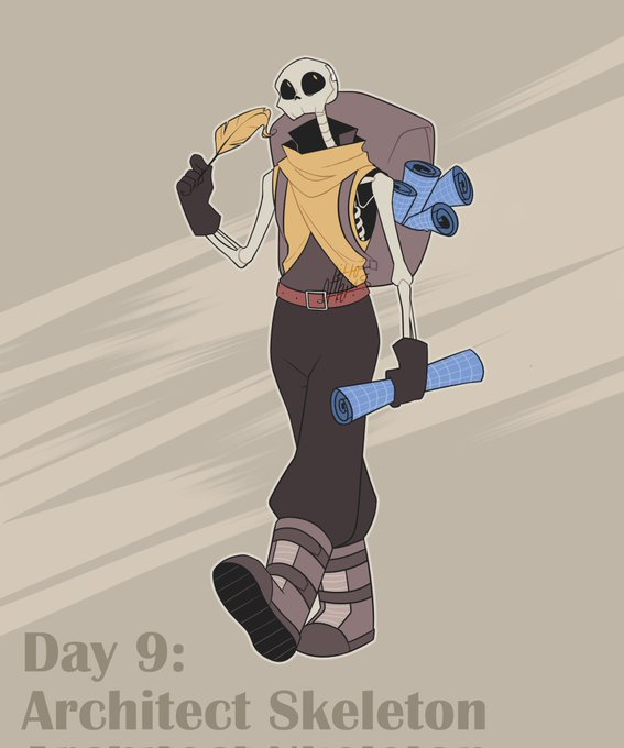 ✨Adoptable✨ Day 9 - Architect Skeleton [$15] A wondering merchant who sells their architectural designs to the cities they visit. DM to claim! #GK_tober2022 #adopt #Inktober