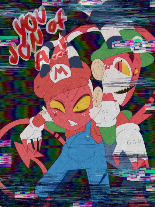 Inspired by a post and request in a group. And no, I have no idea what is going on here. . . . . . #blitzo #moxxie #helluvaboss #helluvabossfanart #mario #luigi #marioandluigi #cosplay #art #drawing #glitch #demon #demons