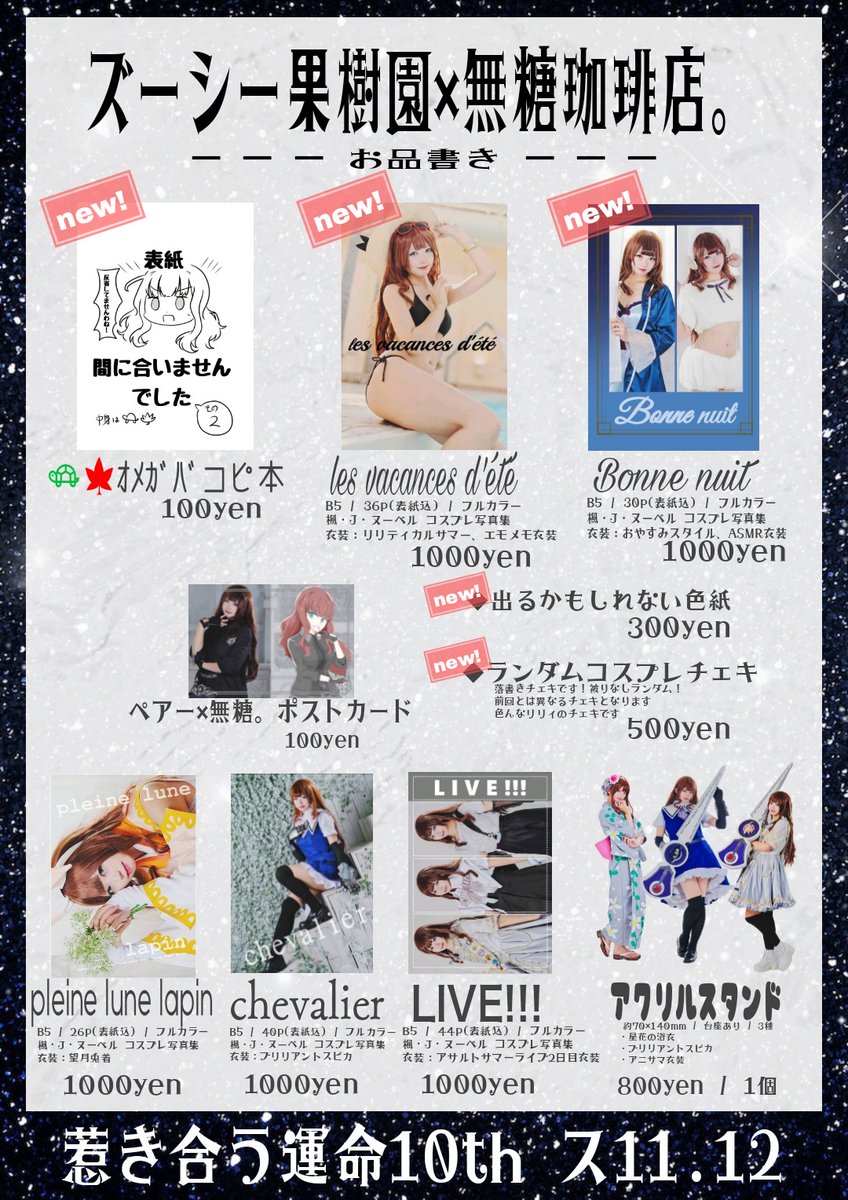 \告知!🍐☕/ 明日の #GLFes にて開催される、アサルトリリィオンリー『 #惹き合う運命10th 』のお品書きです🐢🍁 今回もズーシー果樹園×無糖珈琲店。の合同となります!わーーい!!🍐☕💓 【ス11.12】にて、ペアーさん(@Pear4491)とお待ちしております!🥳🤍