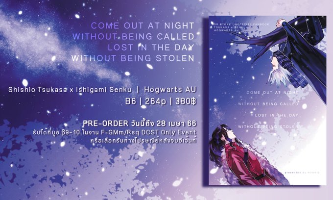 [Pre-order] เปิดพรีโดหมอหิน #สึคาเซ็น Hogwarts AU B6 | 264p | 380฿ 🦁🚀 📅วันนี้ - 28 เมษา 66 🍊พรีตรงนี้ค่ะ forms.gle/uUnrqp4nW2eTVP… รับที่งานหมอหินบูธ β9-10 #GMm_RsqOnly หรือทางปณ. //มาไวไปไว🥶มีตรงไหนตกหล่นสอบถามได้ค่ะ ตัวอย่างในเล่มคร่าวๆ 1th.me/PliPO