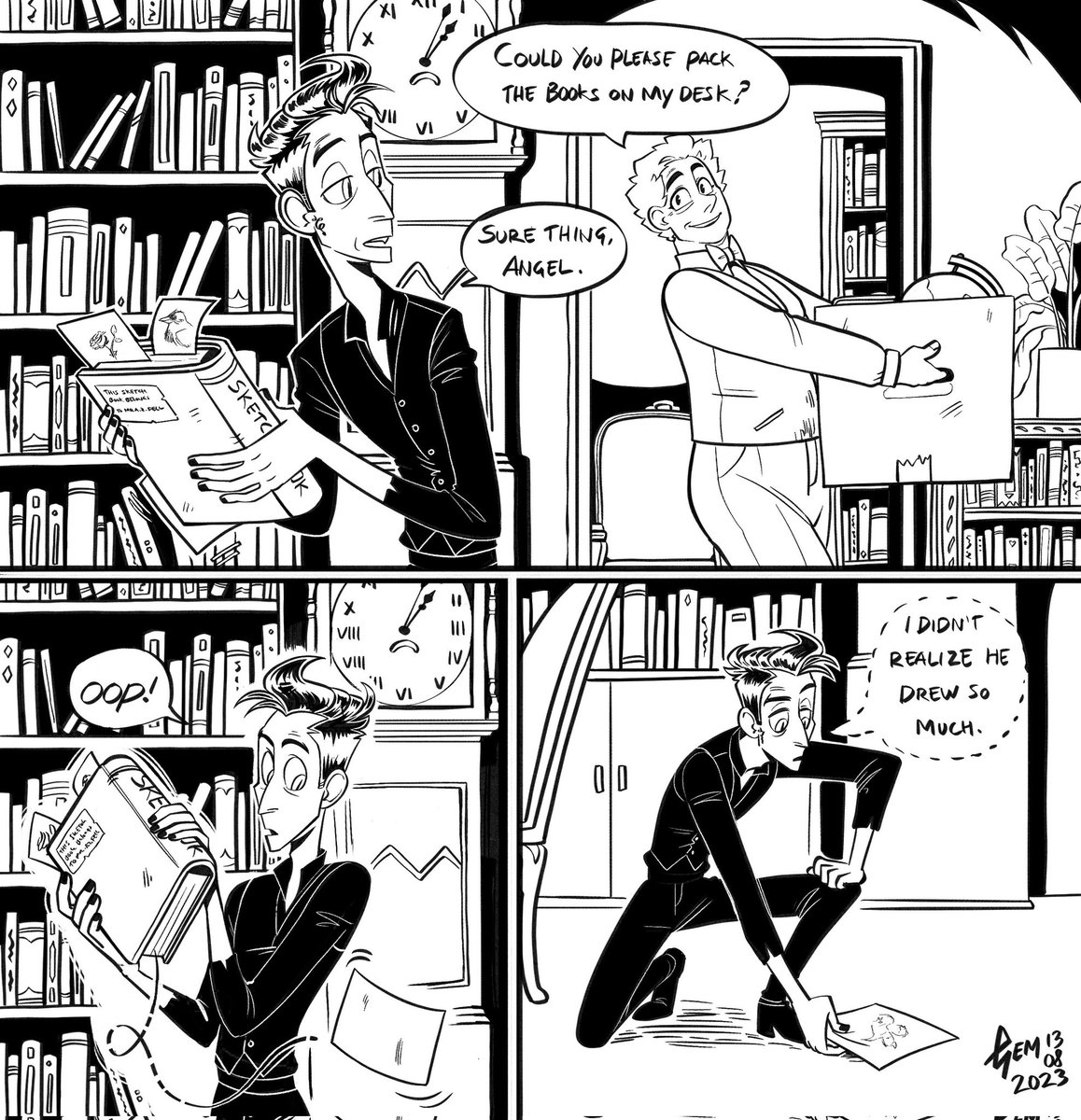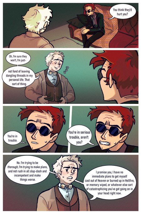 #GO2Spoilers #GoodOmens2 #GoodOmensFanArt aziraphale pops by the bookshop again to explain himself... fanart for a fic i'll link below :: )