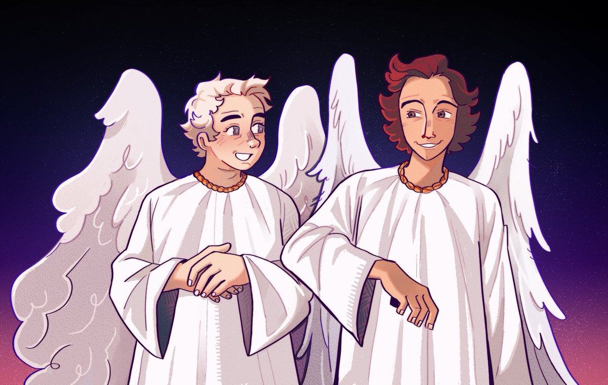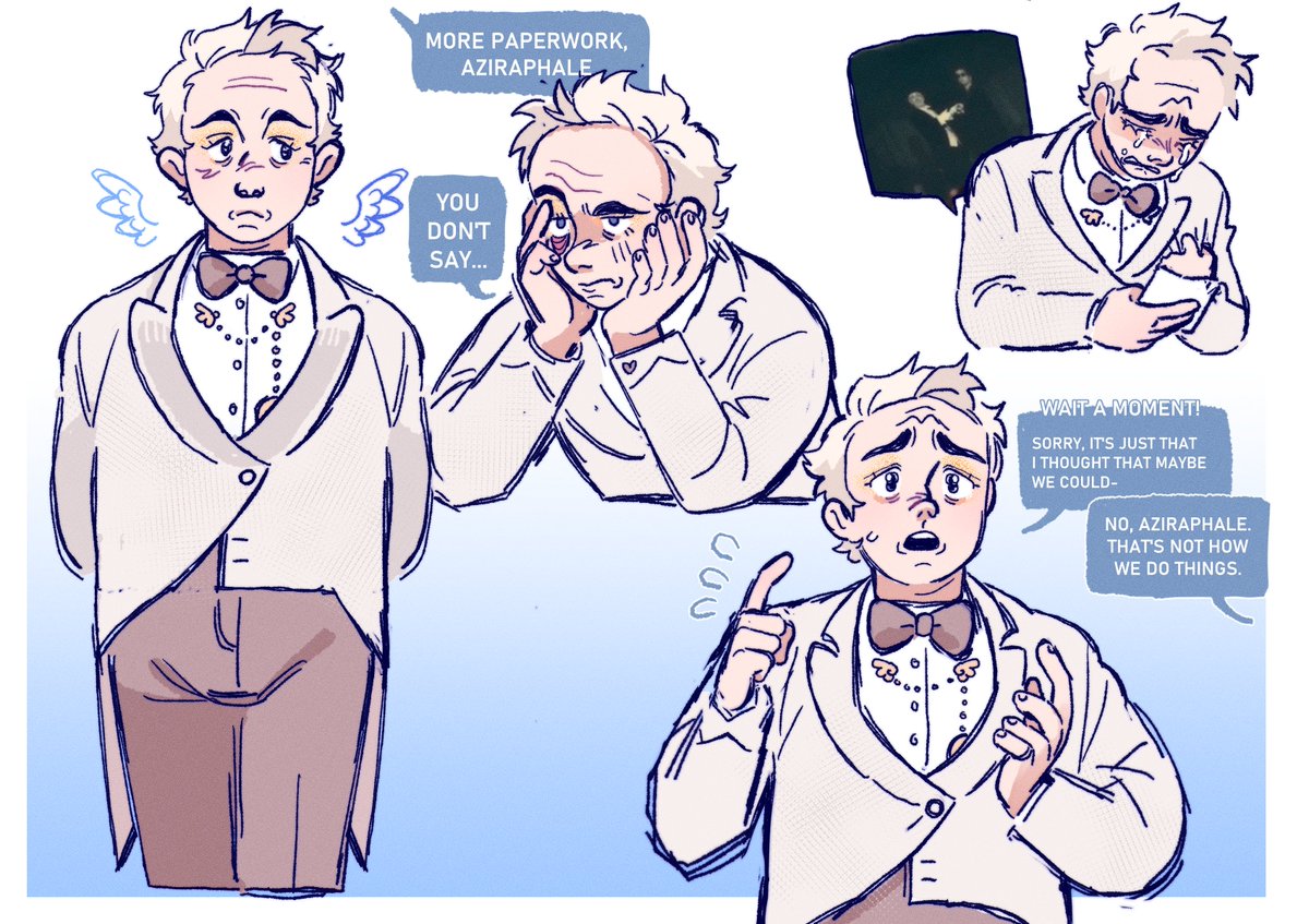 #GO2Spoilers #GoodOmens2 #GoodOmensFanArta cherub and his angel. and a lonely supreme archangel.