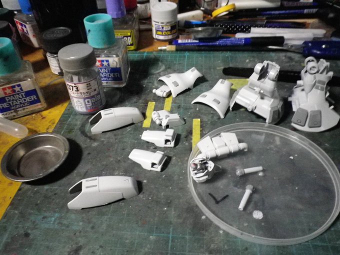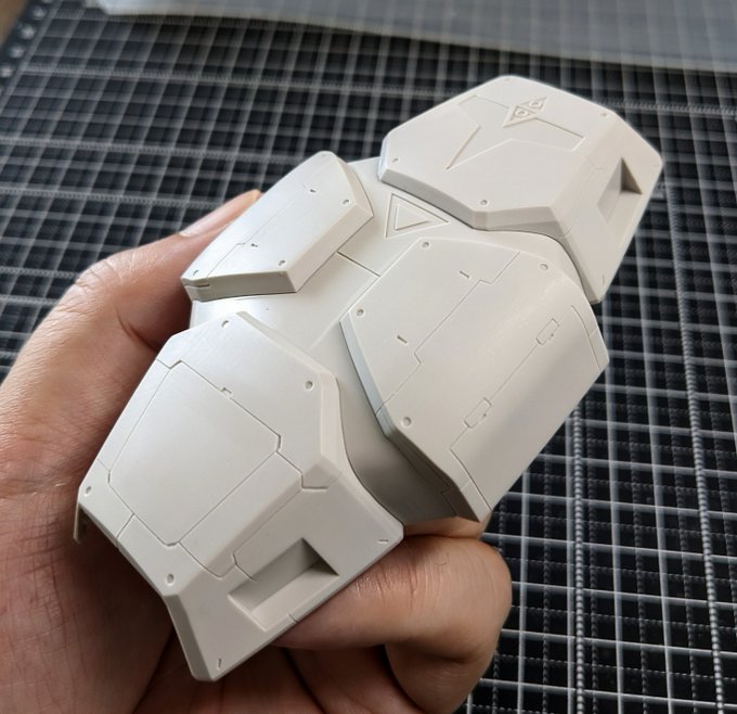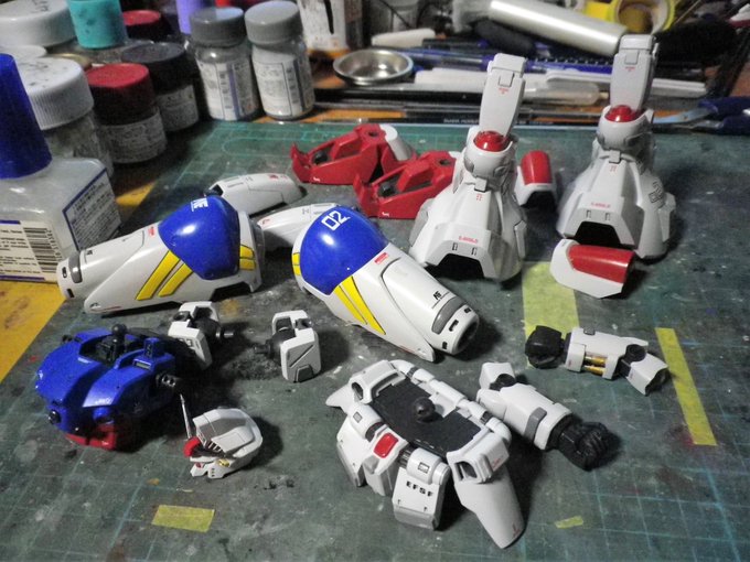 #制作カロリーの高い作品を上げようぜ 角のスクラッチ、胸,腰,腕のアーマー形状変更、ガトリングシールドの接続工作、それにスカートの延長も地味にカロリー高かった~ 使ったキットのお値段も🤤 (クシャトリヤ、羅刹天、MGサイサリス×2 etc.) #ガンプラ #クシャトリヤ #GP02 twitter.com/Caitsit2470638…