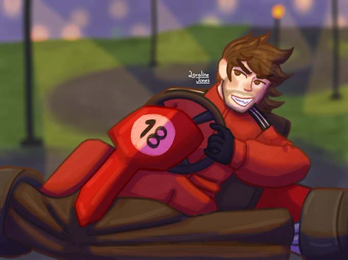 Llego tardísimo, pero aquí está mi dibujo de @DonReborn2 como piloto de karts. Esta vez he optado por un estilo más cartoon, para variar un poco del realista. #FanartsForReborn #gpteammorado #GPTwitch