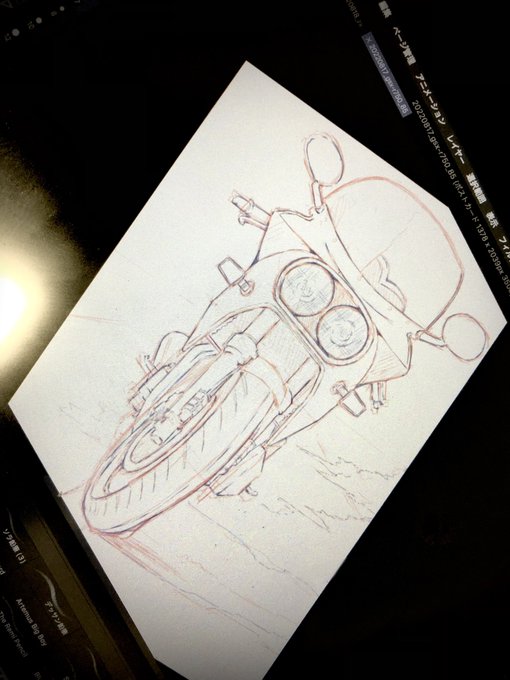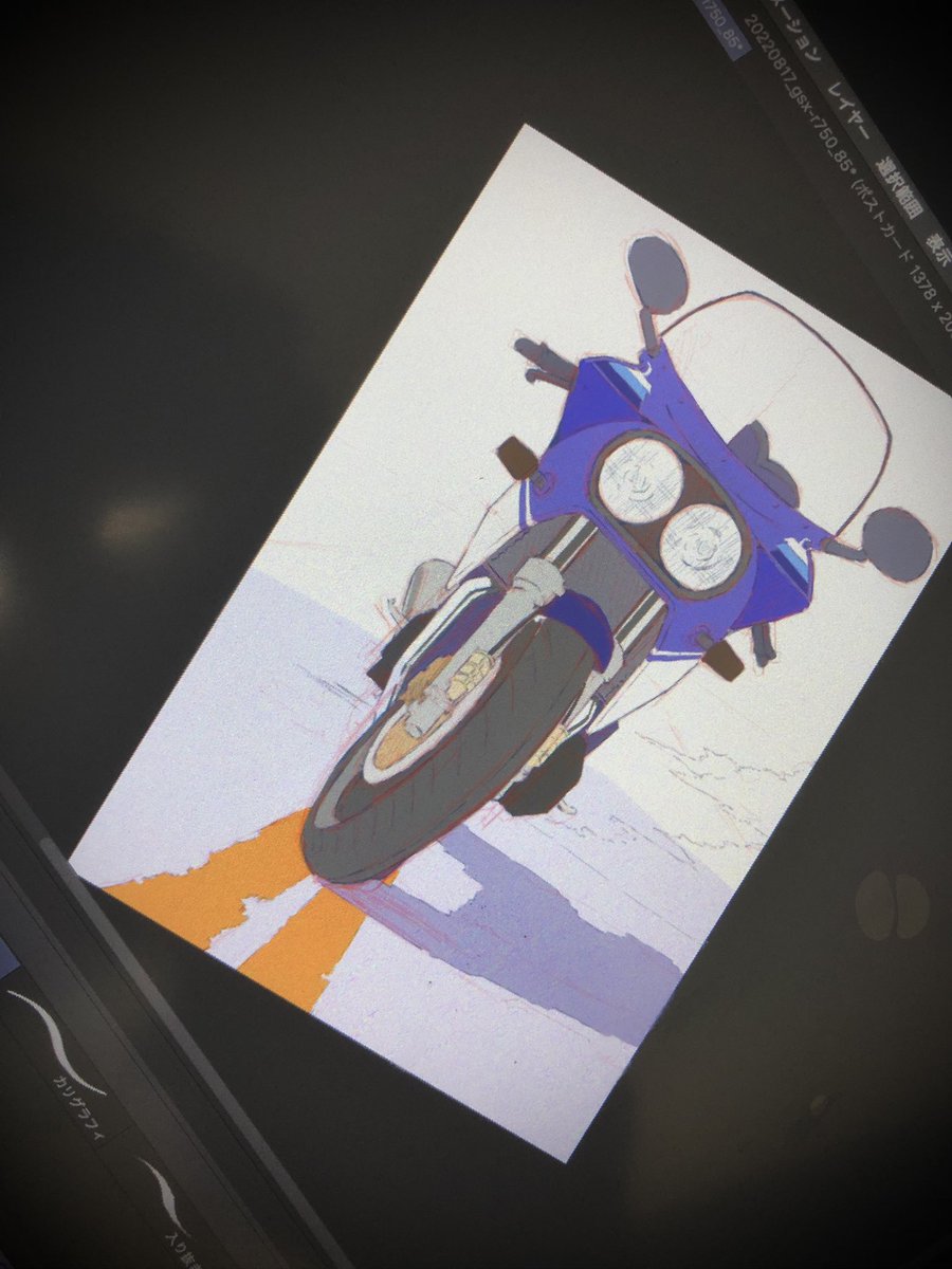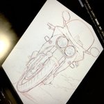 GSX-R750('85)進捗。ゆったりとペンを置いて見るとフロントタイヤのトレッド幅が太いですね。私の好みでアンダーカウルを取っ払っているから油冷の頃の太い意匠を感じるというか。残すか、直すか、もう少し悩みます。 #イラスト #RIP #バイク #Illustration #motorbike #GSX #SUZUKI