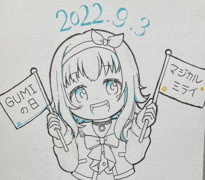 #9月3日はGUMIの日 #GUMIの日 #GUMI #絵描きさんと繫がりたい 間に合ったーー!!!!! おめでと〜〜!!!🎉 短時間で終わらせたのにこの可愛さ我天才かもしらん そのうち塗ります