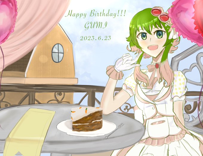 ギリセーフ!!GUMIちゃん誕生日おめでとう🎊🎂 GUMIちゃんと誕生日一緒なのが唯一の誇り #GUMI生誕祭2023 #GUMI誕生祭2023 #GUMI14周年 #絵柄が好みっていう人にフォローされたい