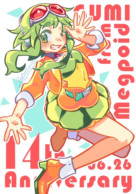 お誕生日おめでとう! 君と出会ってから14年も経つんだね! さすがにVOCALOIDの歌唱ソフトとかは持ってないんだけど、これからもよろしくね♡ #GUMI誕生祭2023 #GUMI生誕祭2023 #GUMI14周年
