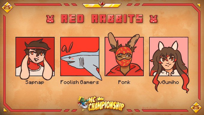 Red rabbits!! Fun team!!! #mcytfanart #mccfanart #ponkfanart #gumifanart #sapnapfanart #foolishfanart