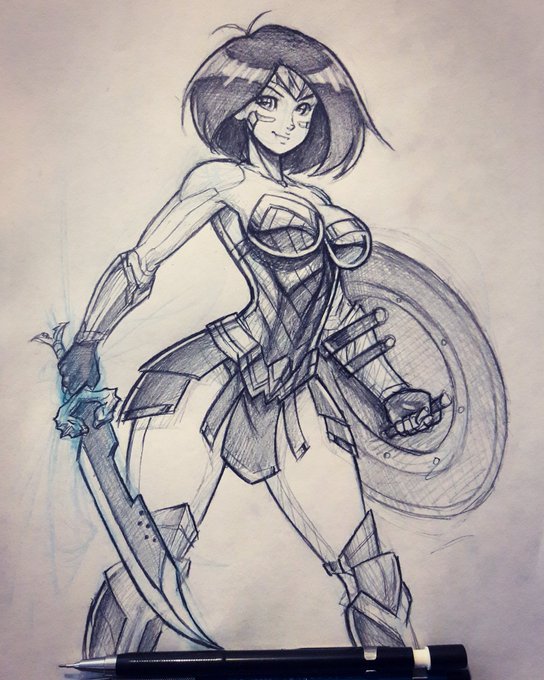 😍 #Alita dress up as #WonderWoman 😍 Mashup of the two most badass women in film I've seen in recent years 😁 Alita: Battle Angel is still in theaters! Treat yo self! #art #illustration #AlitaBattleAngel #battleangelalita #gunnm #anime #mangaart #comicbooks