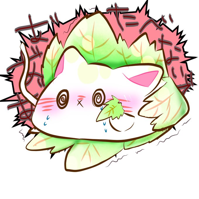 #私の絵柄が好みって人にフォローされたい #GW限定創作クラスタフォロー祭り #絵師さんフォロバ100 今日息抜きに10分で描いた柏猫ちゃんの‥ 食べられたくないから代わりに自分の葉っぱを千切ってくれる