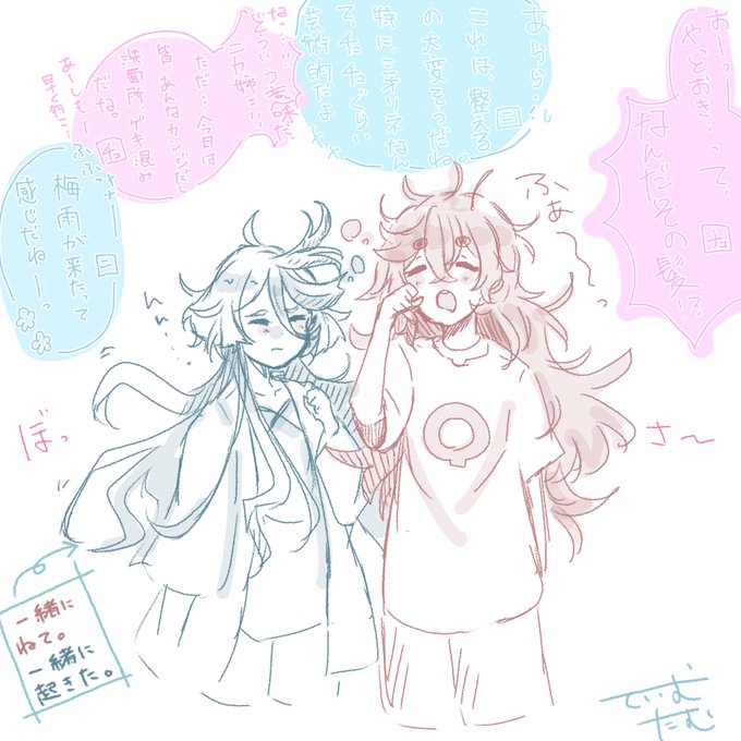 【43日目】 「湿気がすごいです……あと眠たい……」 「この時期って、何かとだるいのよね〜」 「チュチュ先輩もいつもの3倍、髪が膨らんでますね…!」 #スレミオ #水星の魔女 #100日チャレンジ #G_Witch_M