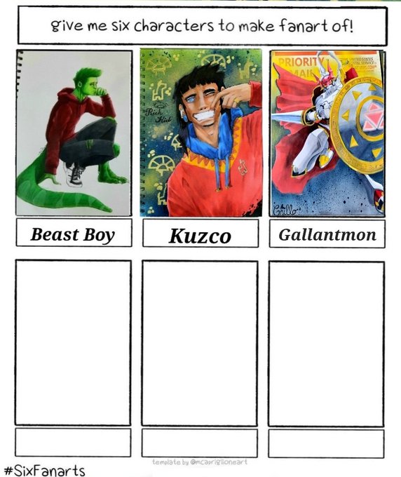So, who's next? #SixFanarts #sixfanartschallenge #sixfanartmeme #beastboy #kuzco #gallantmon #digimon