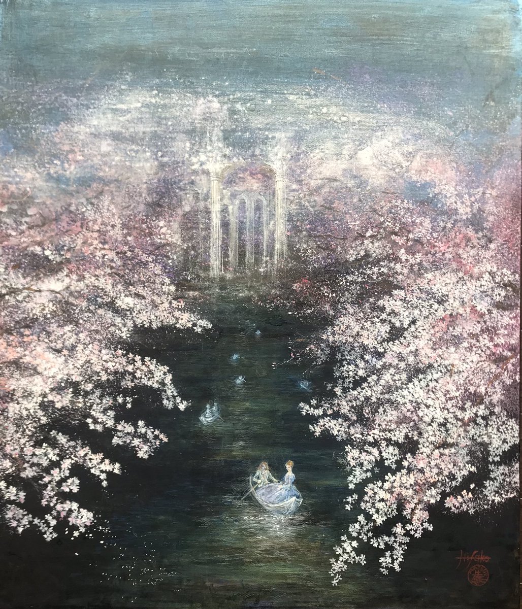 花の降る門 F10 キャンバス ギャラリーブラウカッツェさんの10GO10INTRODUCTION2022参加作品です。5/22〜5/29まで #galleryblaukatze #アクリル画 #10GO10
