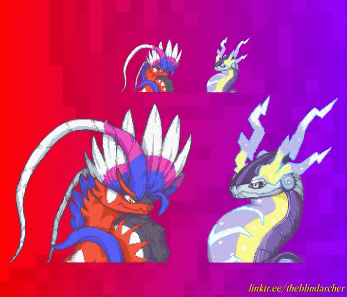 We can learn much from the past as we move towards the future. Be sure to bring sandwiches. GBA #FireEmblem style pixel art of Koraidon and Miraidon. #pixelart #fanart #ドット絵 #PokemonScarletViolet #Koraidon #Miraidon #Nintendo #GameFreak