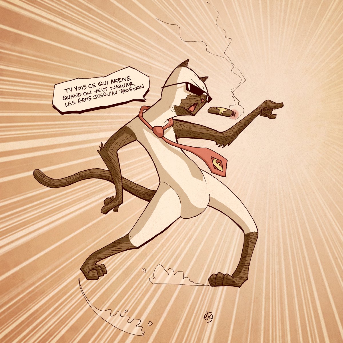 Jour 3 : Fredo les bonnes affaires. Ce chat agent d'artiste et totalement insupportable a toujours une bonne réplique cinglante pour humilier les gens. Un chat dans toute sa splendeur ! #inkofroles #inktober #inktober2022 #gameofroles @FibreTigre @PandaKaoru_ @Gofroles