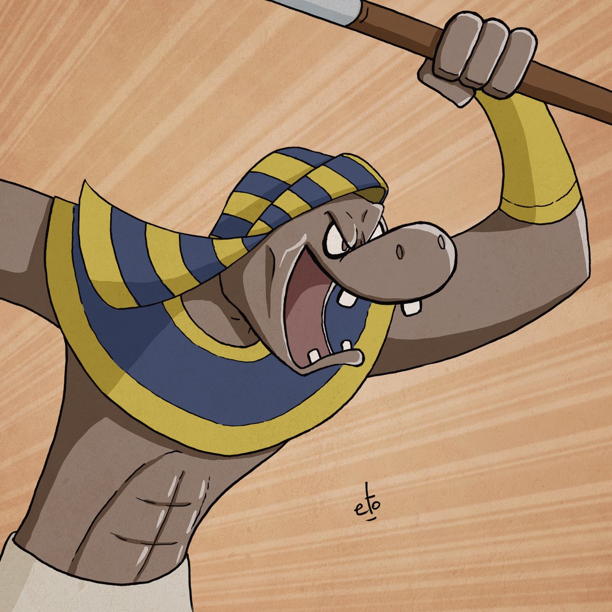 Jour 7 : Poursuite Pas facile d'échapper à un homme hippopotame lancé à tes trousses sur ordre du pharaon sanglant. #inkofroles #inktober #inktober2022 #gameofroles @Gofroles