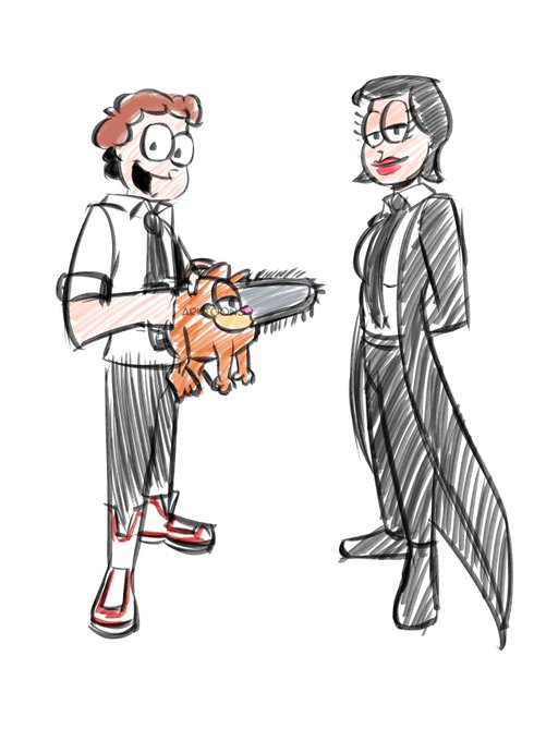 Hello This image appeared in my head while I was looking for my backpack. #chainsawman #garfield