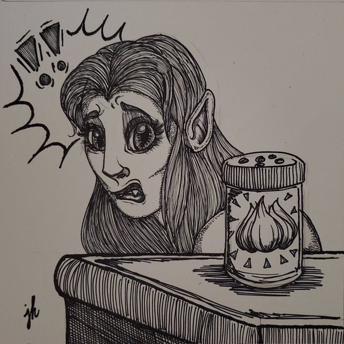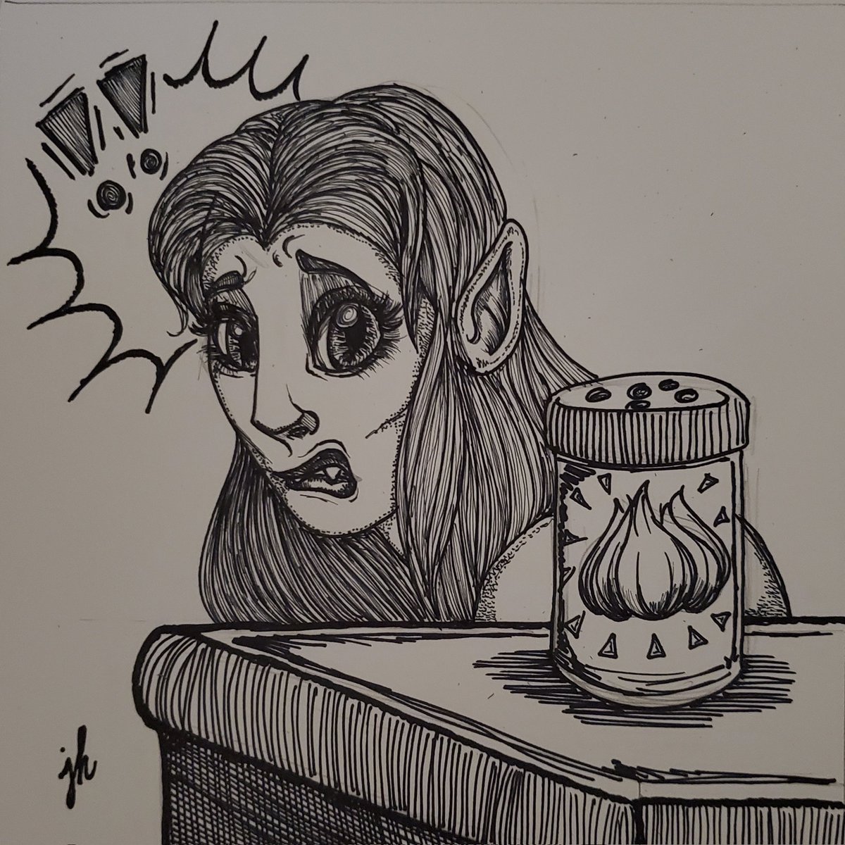 #Inktober2022 Day 29: "Van Helsing's Kitchen" #artistsontwitter #uhoh #inktober #vampire #Dracula #garlic #horrorart
