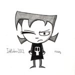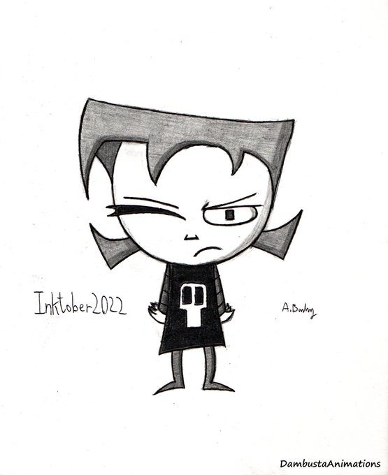 "What are YOU looking at?" More characters from a criminally underrated show! Its Gaz, Dibs sister, the only other relatively sane human in the show and all round scary bi- #InvaderZim #Gaz #Inktober #inktober2022 #inktober2022day3 #traditionalart #Nickelodeon #ArtistOnTwitter