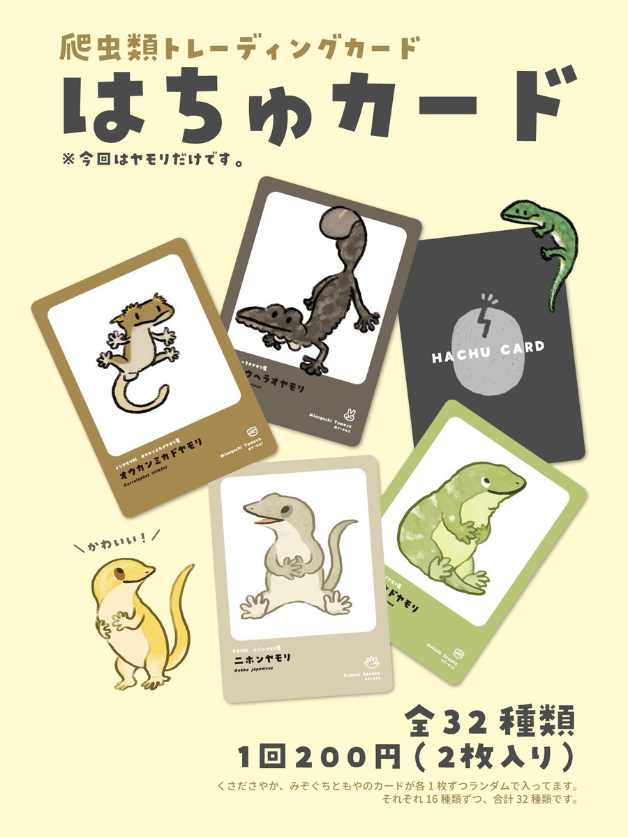 ゲッコーマーケット用に みぞぐちともやさん(@tomoya_mizo)とはちゅカードというカードを作りました🦎 1回200円!ランダムで2枚カードが入っています🌷どのヤモリが出るのか…!ぜひ集めてみてください🥳 #ゲッコーマーケット #GeckoMarket