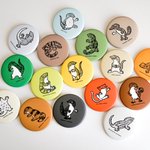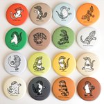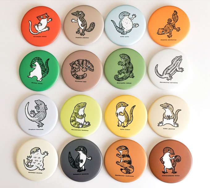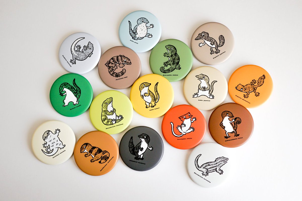 『ヤモちゃん缶バッジ』 44mmサイズ、マットな質感の缶バッジです🌷 はちゅカードと同じ16種のヤモリたちを1色で描き直したイラストです🦎ぜひ〜!よろしくお願いします😌 #ゲッコーマーケット #GeckoMarket