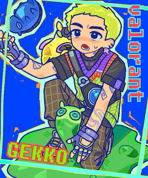 Gekko in his fancy suit and his buddies~ #art #digitalart #gekko #gekkovalorant #valorant #valorantart