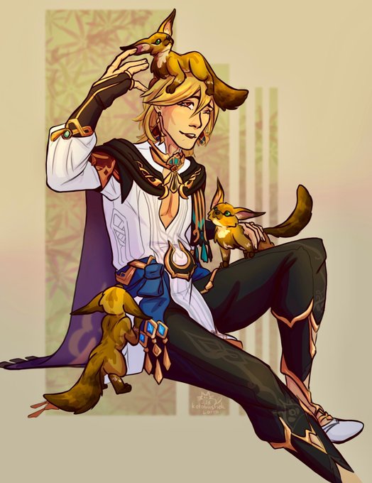 Kaveh is just too cute with this foxes in current event #genhin #genshinimpact #genshinimpactfanart