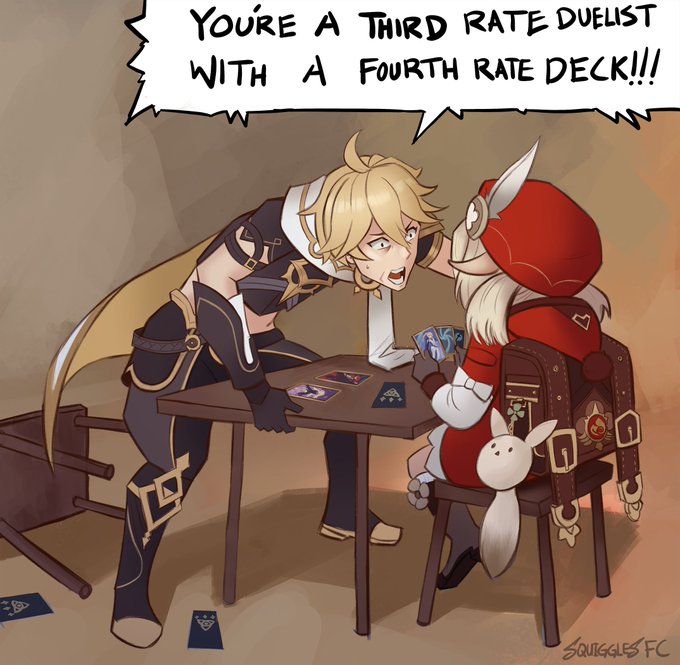 Genius Invokation TCG really brings out the Kaiba in me. #GenshinImpact #Aether #Klee #FanArt #YuGiOh #Meme #GeniusInvokationTCG