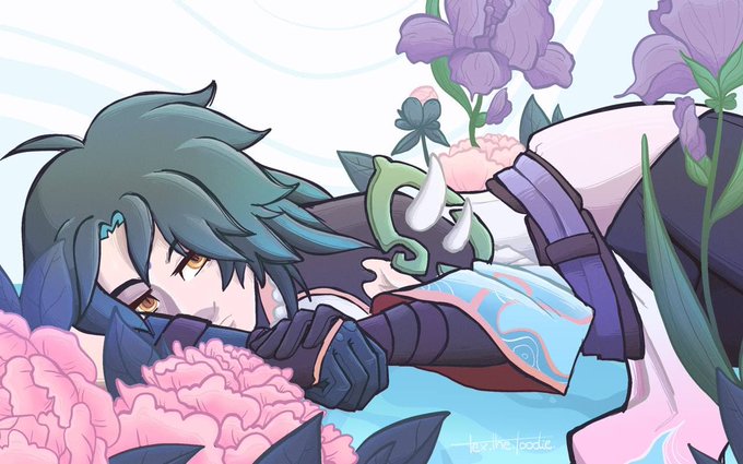 Xiao fanart for the constest. I have many more idea in my head but every of it has flowers in it. Weird. #xiao #flowers #fanart #genshin #genshinimpactlotteryevent #GenshinImapct #genshinimpactfanart