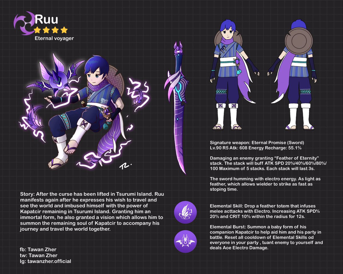 After playing the Tsurumi Island world quest, it got me thinking. “What if Ruu got a chance grow up and became a playable character?” 🤔🤔🤔 So here he is ✌️😁 #Tawanzher #genshinimpact #genshinimpactfanart #genshinimpactoc #genshinimpactnpc #npc #ruu #TsurumiIsland #Kapatcir