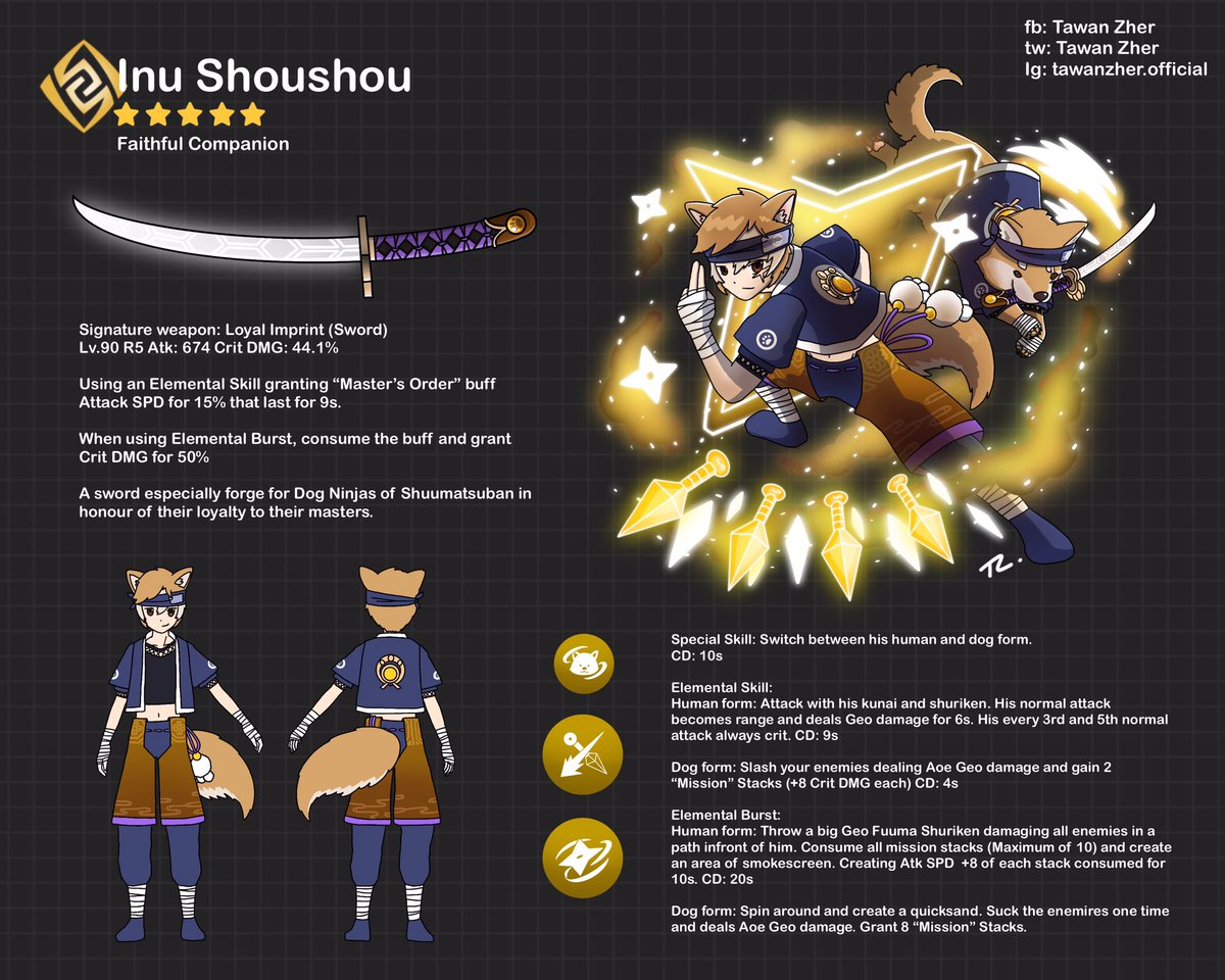Since we are having Gorou very soon. Maybe this is how Ninja dogs work with their masters. Lol. Just a fun idea, would be cool to play as Shiba Inu 🐶⚔️ Hope you guys like him ☺️ #Tawanzher #genshinimpact #genshinimpactfanart #fanart #genshinimpactnpc #npc #InuShoushou