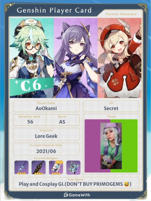 Joining the bandwagon 💚💜 #GameWith #GenshinPlayerCard #GenshinImpact #cosplayer gamewith.net/genshin-impact…
