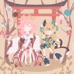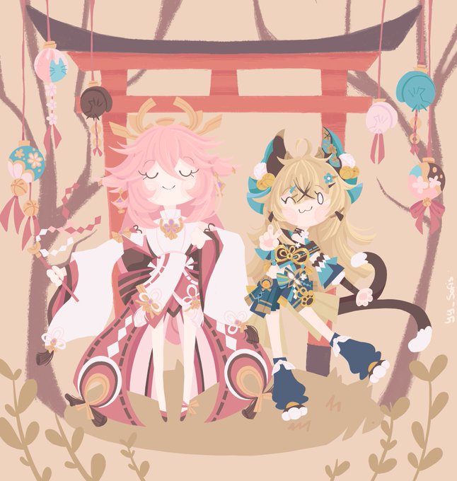 #genshinleaks I hoppe they are bffs. Anyway an illustration of my favs maidens they are so pretty pretty!!!!!🎏💕✨ #yaemiko #momoka #Genshinfanart #momokafanart