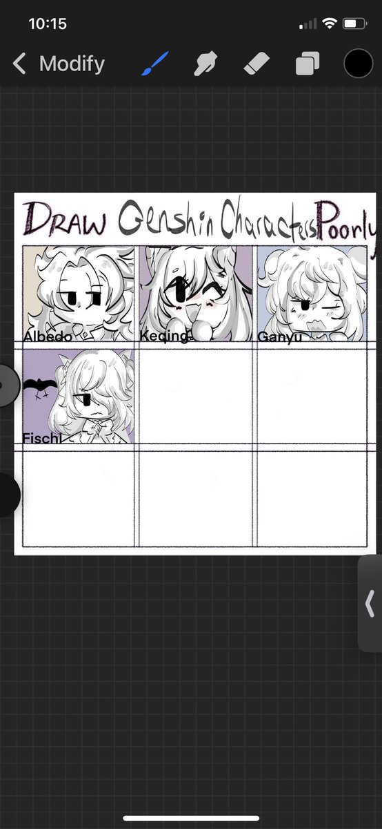 I’m working on a “draw __ poorly” board, who should I do next? — #genshinart #genshinimpact #genshintwt #genshinimpactfanart #albedo #keqing #ganyu #fischl #genshintrading #genshintrade