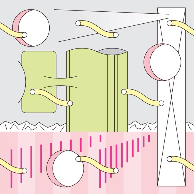 Fantastic #geometric city by Nick Slater. We love the contrasting #shapes, negative spaces and #colors in this piece! Nick is represented by @folioart. Explore more: buff.ly/3PJ3DqX #vectorart #graphic #icons #cityart #urbanpattern #vectorillustration #digitalart