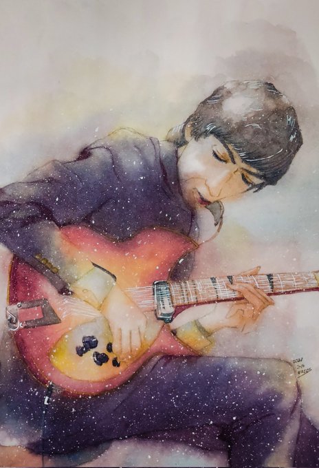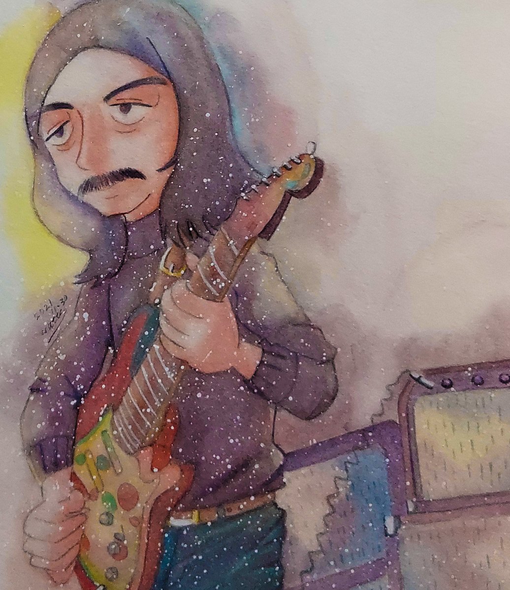 昨日はジョージ・ハリスンの命日でしたね…もう20年なんですね。日本は確か30日に報道された記憶が…改めてジョージの曲は優しいボーカルやギターの音色が凄く聴き心地が良いです🎸 #ジョージ・ハリスン #GeorgeHarrison #ビートルズ #BEATLES #illustration #水彩 #水彩画 #art #artwork