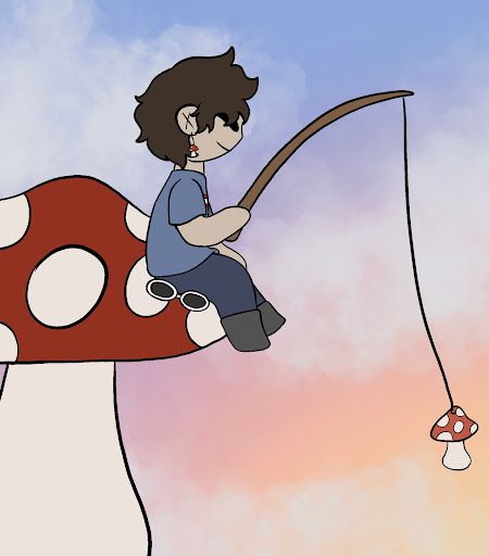 right you know what i'm late but oh well HAPPY BIRTHDAY @GeorgeNootFound @GeorgeNotFound have a drawing of you on a mushroom :) #georgenotfoundfanart #georgenotfoundart #Georgebirthday