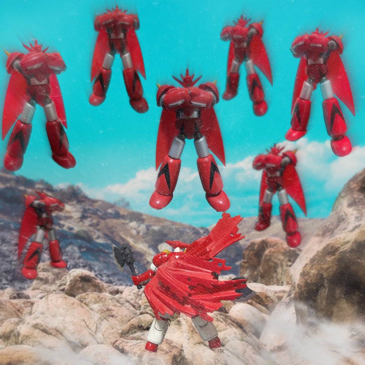 #おもちゃ撮影会 お題「4コマ2」 1枚モノだと配置とか画角範囲内でのバランス取りとか難しいけど、4枚組の投稿は強調したいポイントさえ決めれば後は勢いで撮れるから好き🥰 自分の過去作で一番好きな4枚組。 真ゲッターロボ・世界最後の日📸 #GetterPhotoMuseum HEATS、聴こえるかな🔥?