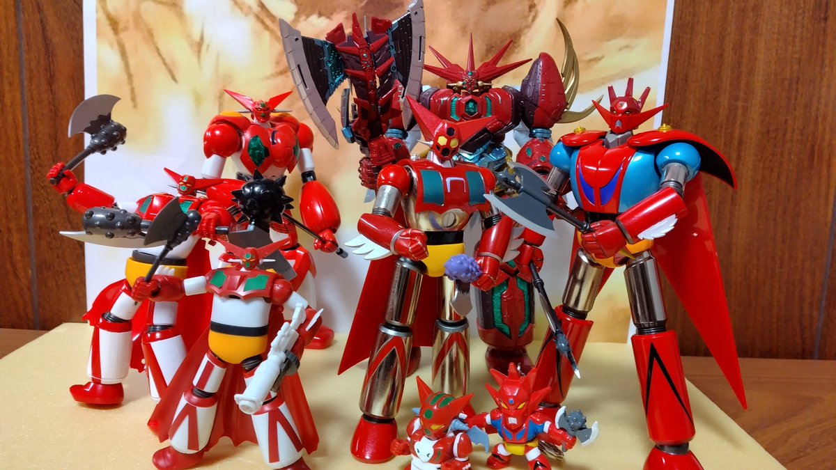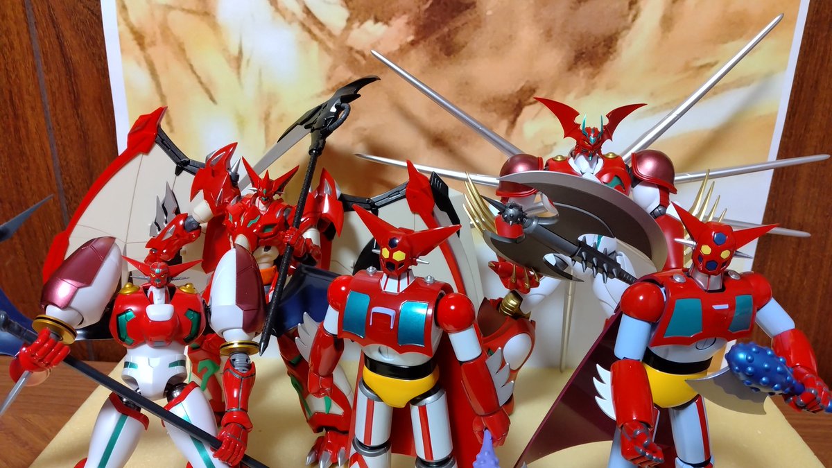 #夜のフィギュア撮影会 お題「色」 やはりゲッターのシンボルカラーは赤🟥🔥! …ということで、今日現在我が家に棲む赤いのを全員集めてみました📸 全部で21体、誰も隠してません、ホントにコレで全部です😇💦 #GetterPhotoMuseum 我ながら「何やってんだかなー」とは思ってます😅